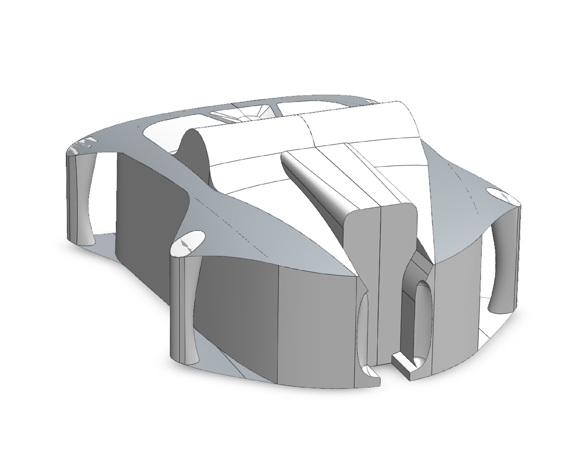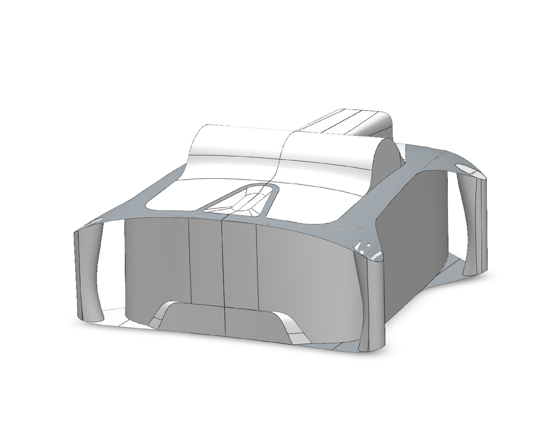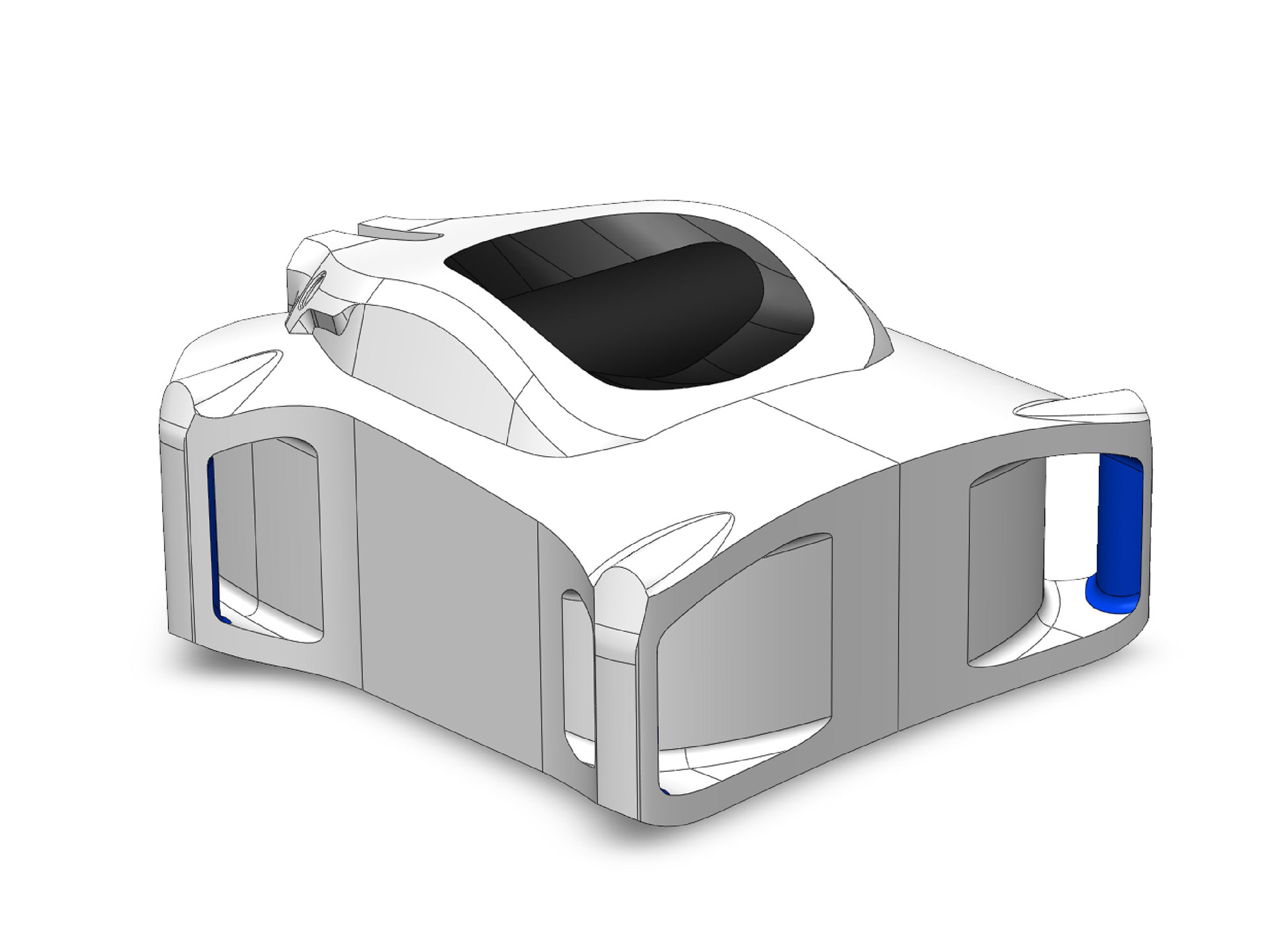 We began by lengthening the frame to provide the new volume, then added in the new CIT and EM interfaces. I used this basic geometry to ideate around the skin forms that integrate all of the new changes and handhold placements.