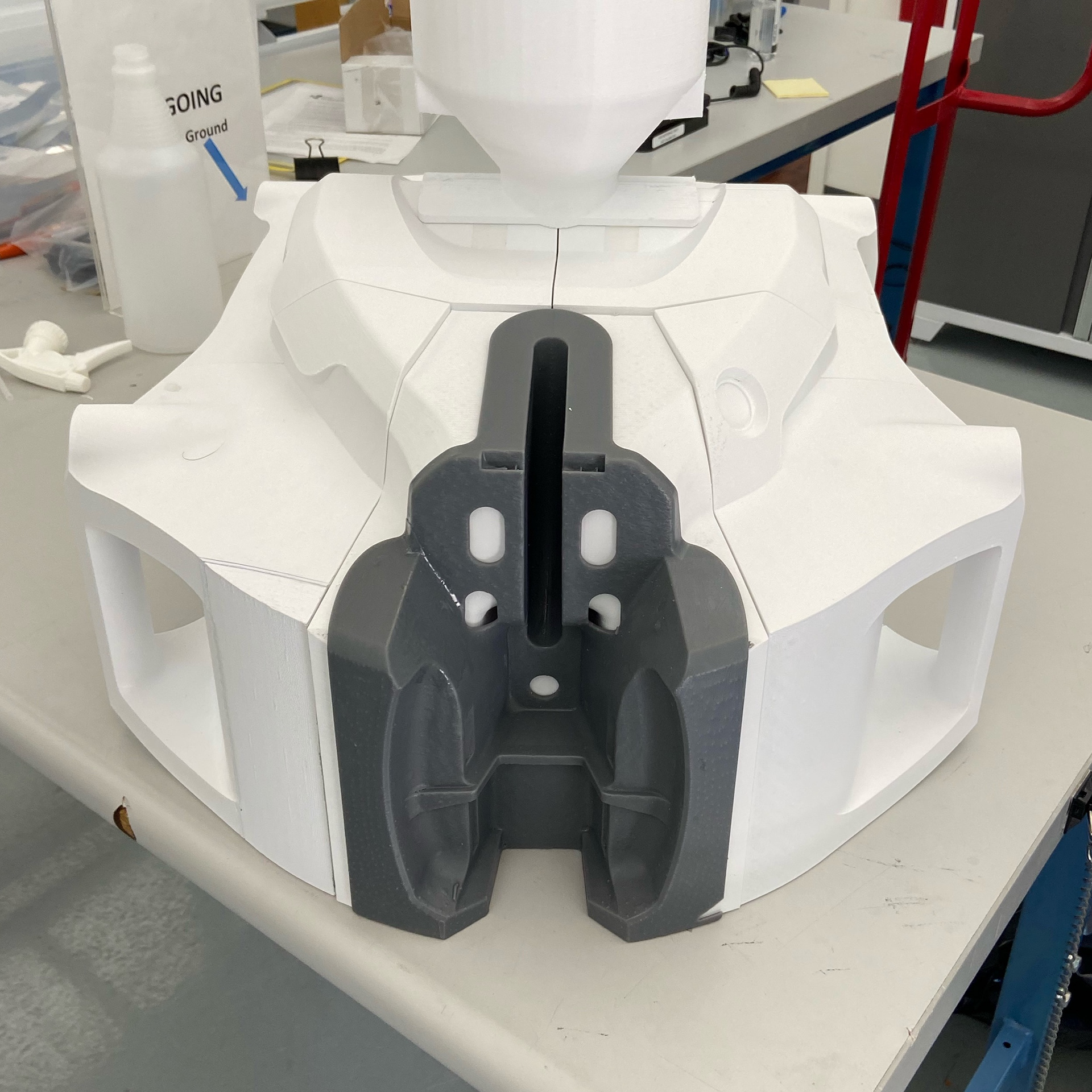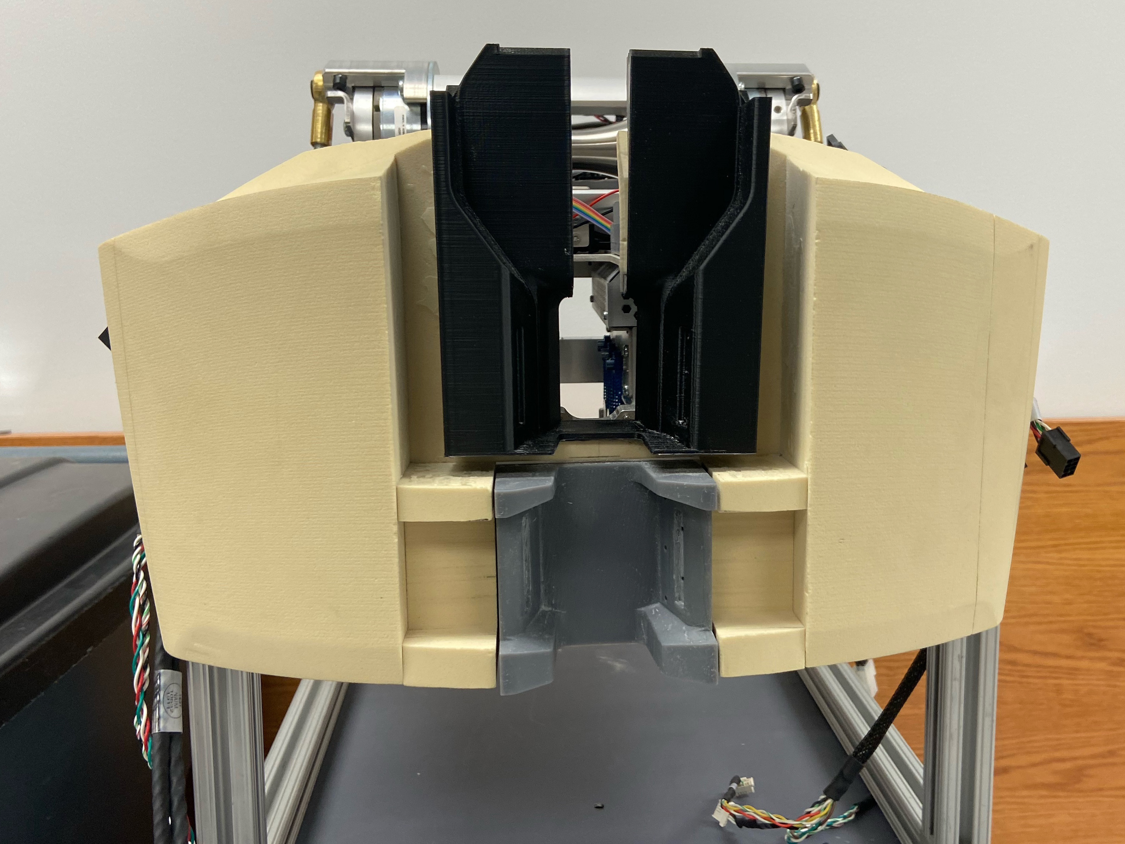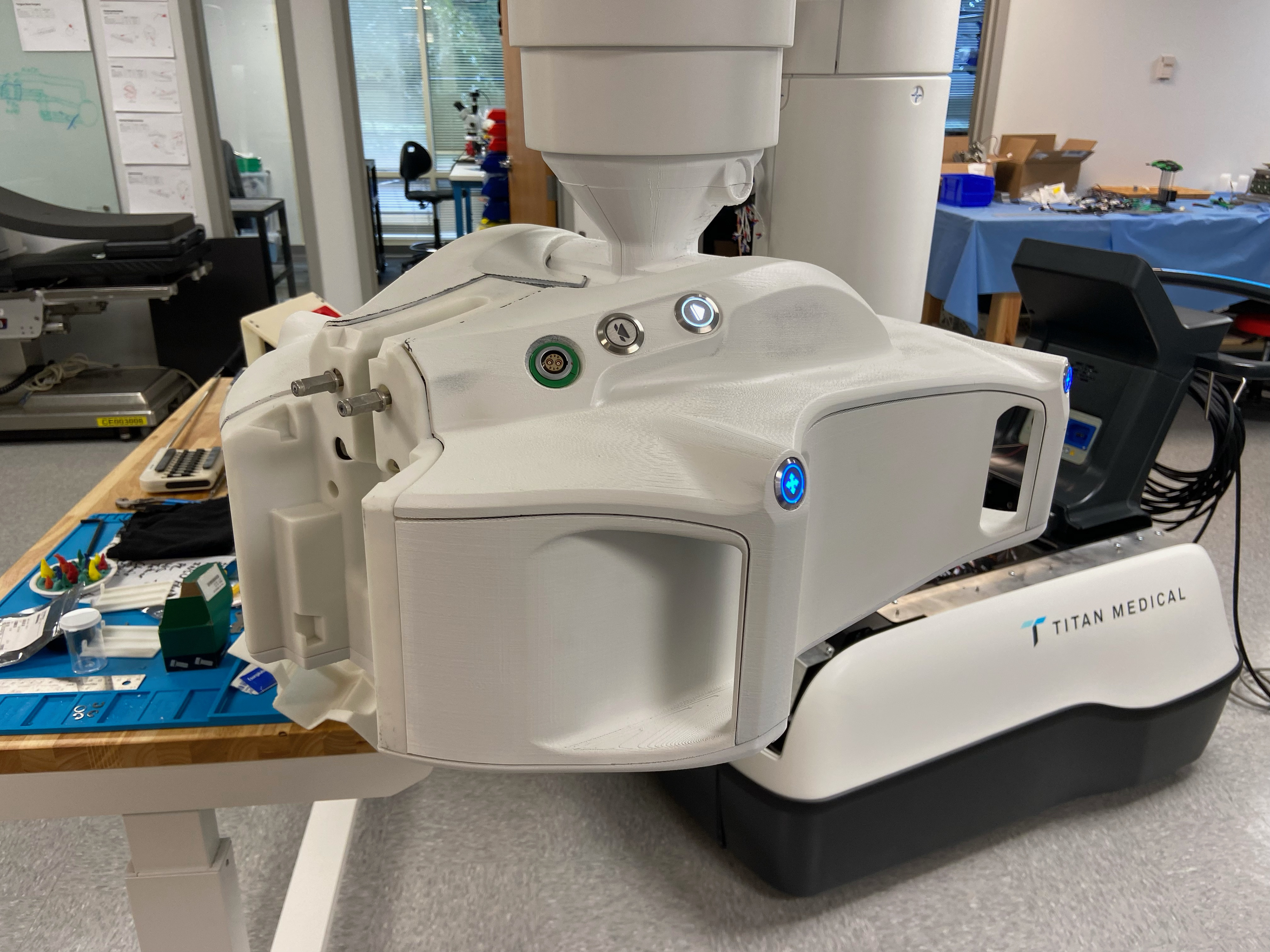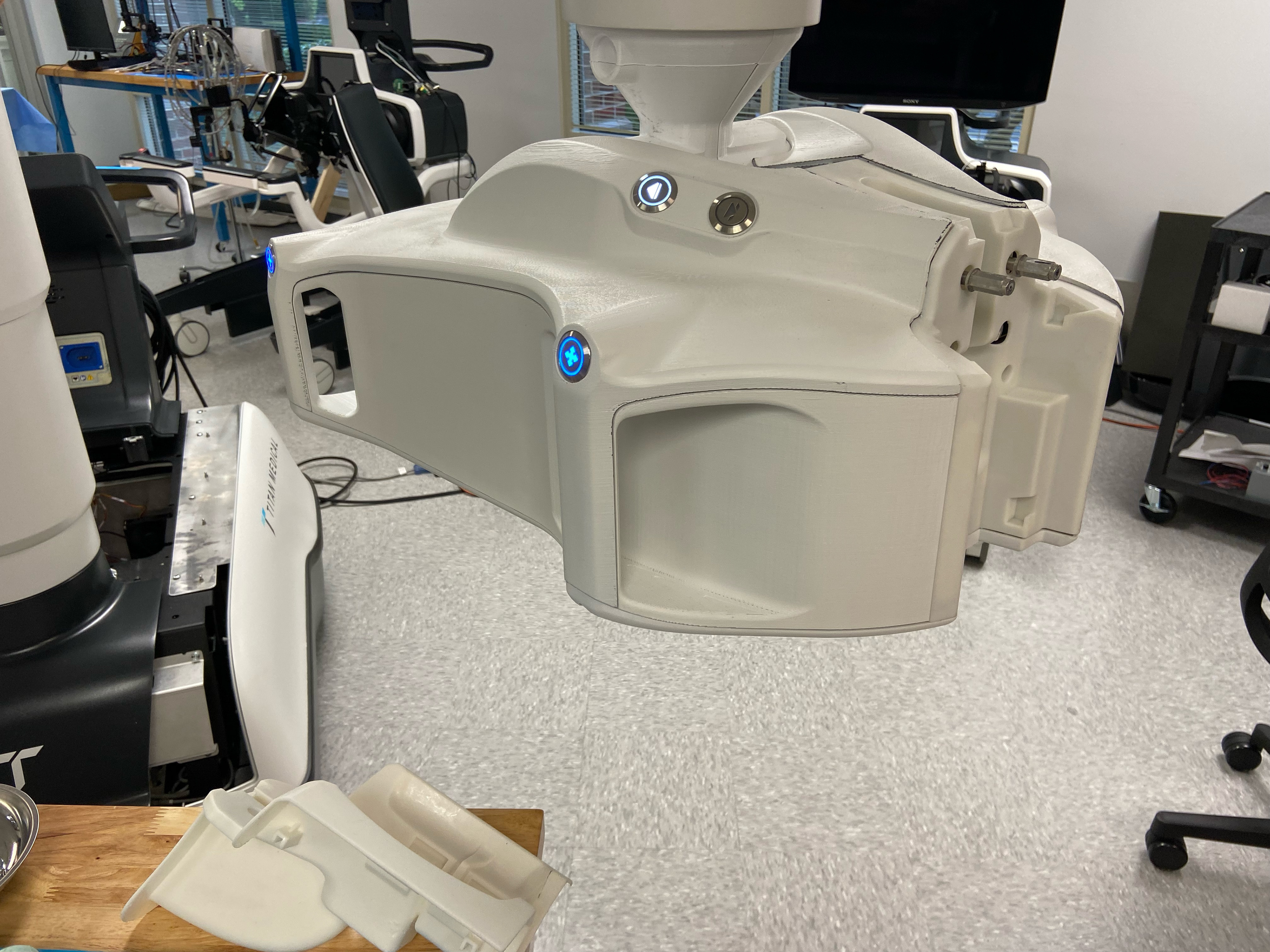 Before moving into the detailed mechanical design we printed a full-scale volume model to assess ergonomics and simulate the sterile barrier to CU and CIT/EM interface.