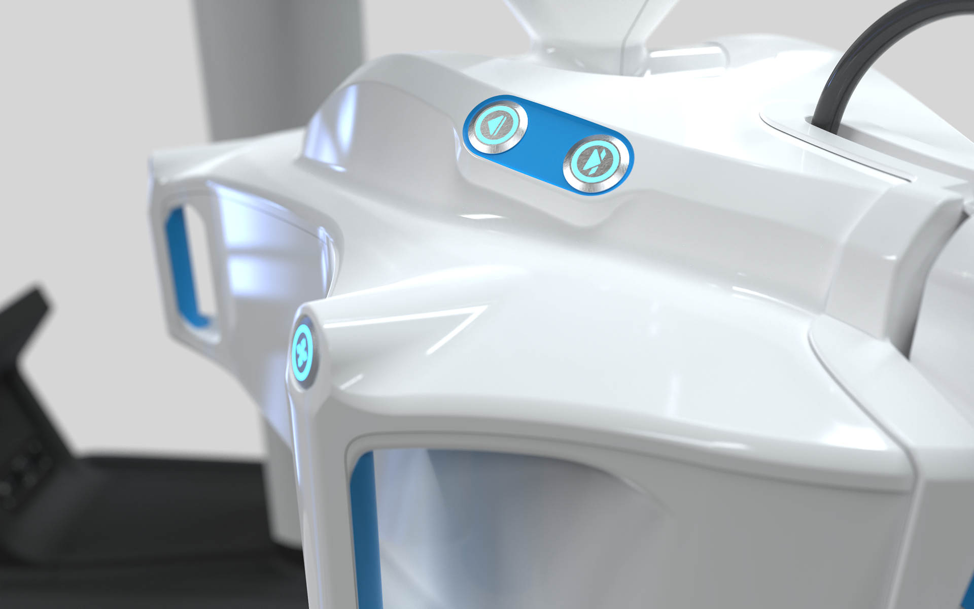 After consideration and assessment, the Titan Medical leadership team decided to pivot back toward a conservative design concept more akin to the original skin design rather than using the chosen direction. I retained the handle locations and volumetric form that made up the bulk of the CU and blended in the EM to the pitch joint.