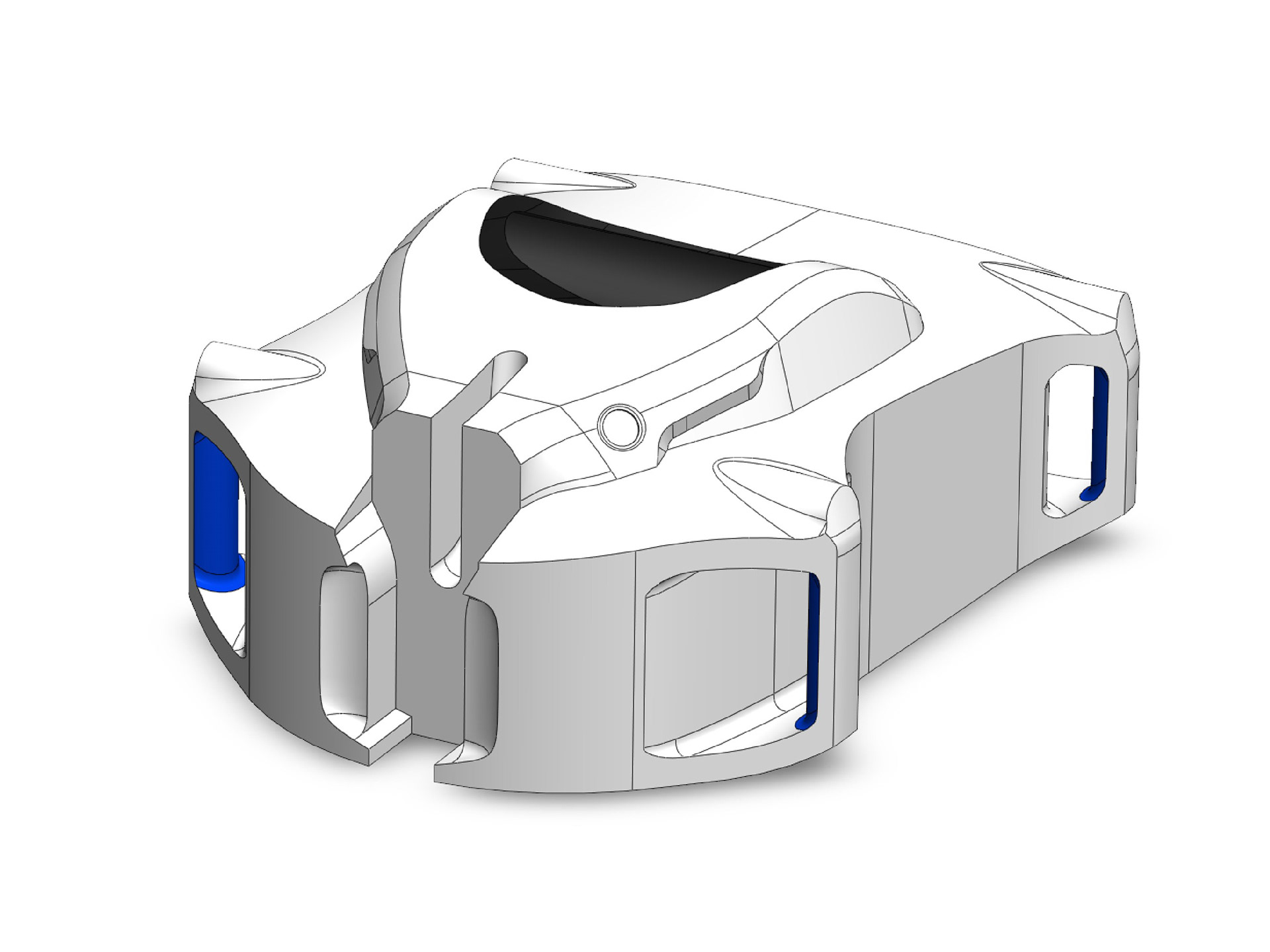 It became apparent that we would need to redesign the entire CIT/EM/CU interface. To achieve the level of ease and speed needed when attaching the CIT and EM we designed robust lead-ins into the form so the parts self-align and clip into place with minimal effort while making a secure connection.