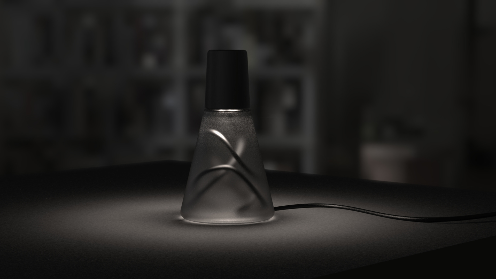 The Erlenmeyer Lamp has a couple tricks up its sleeve. Excess cord can be pushed into the frosted glass enclosure. This creates a misty terrarium effect with the black cord meandering to and fro within the glass.