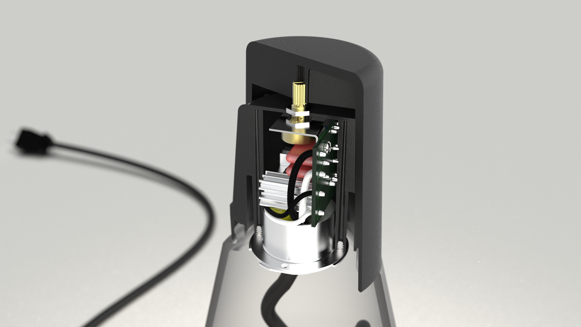 To organize the cord inside, you can pop the cap off the glass enclosure with a little upward pressure.