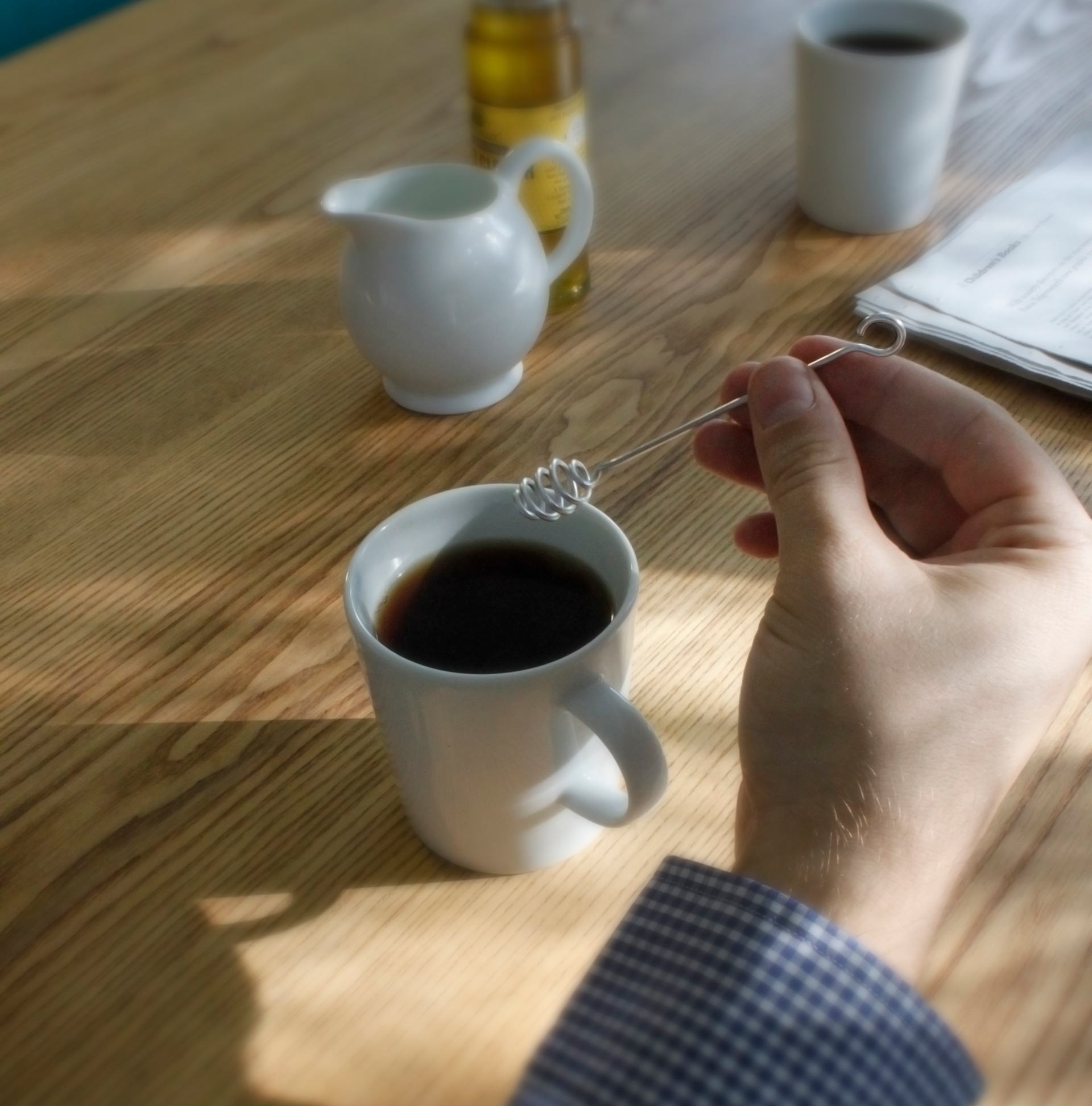Inspired by a traditional bee hive, or Skep, this honey dipper is CNC bent from a continuous single wire coiled into a smooth helix cage on one end. An exploration of both beauty and function that adds a bit of joy to your morning routine.